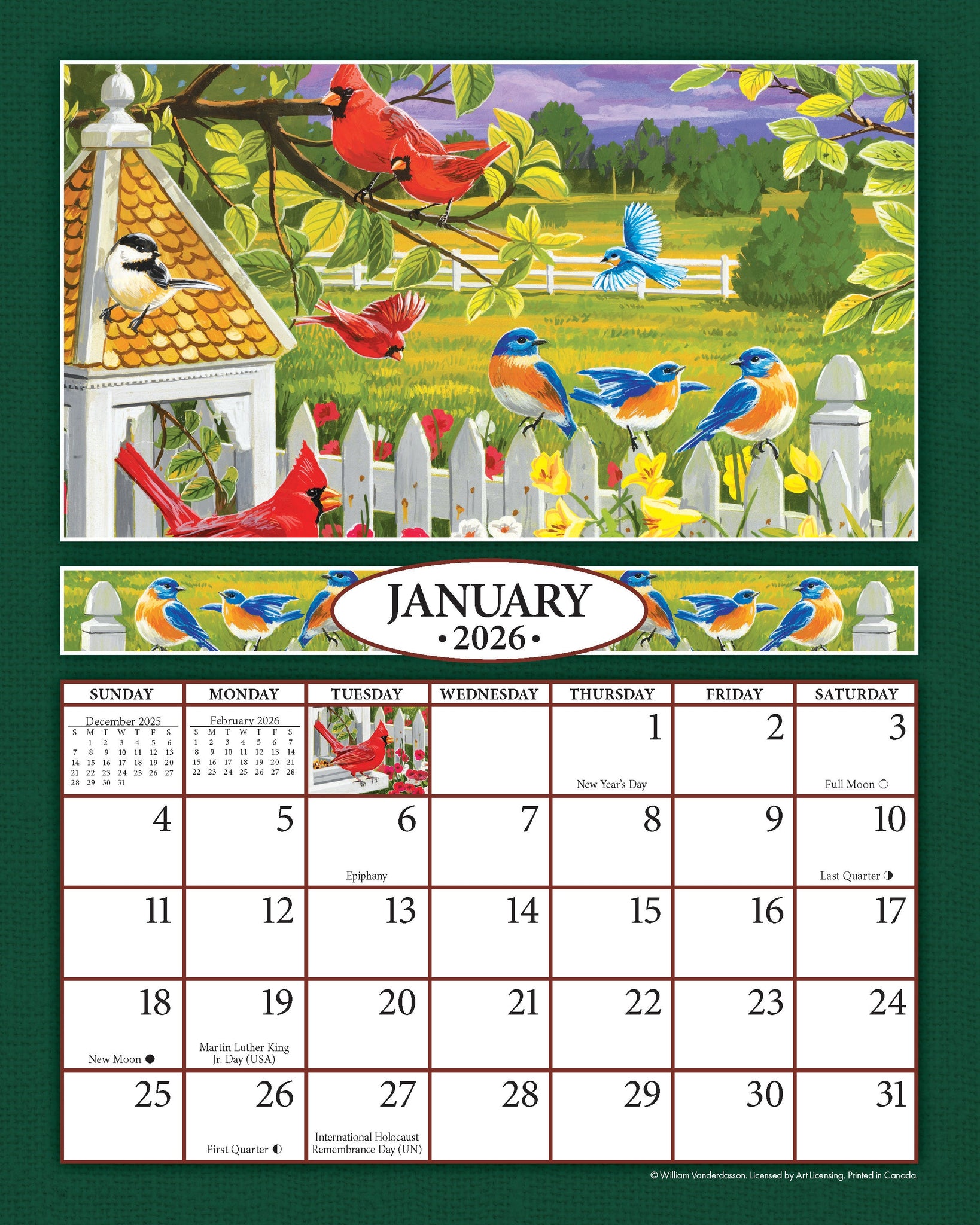Peek into the playful, frolicsome colorful world of birds! This 2026 - 8x10 Refill Sheet Calendar allows you to be a bird watcher all year round from the comfort of your own home.