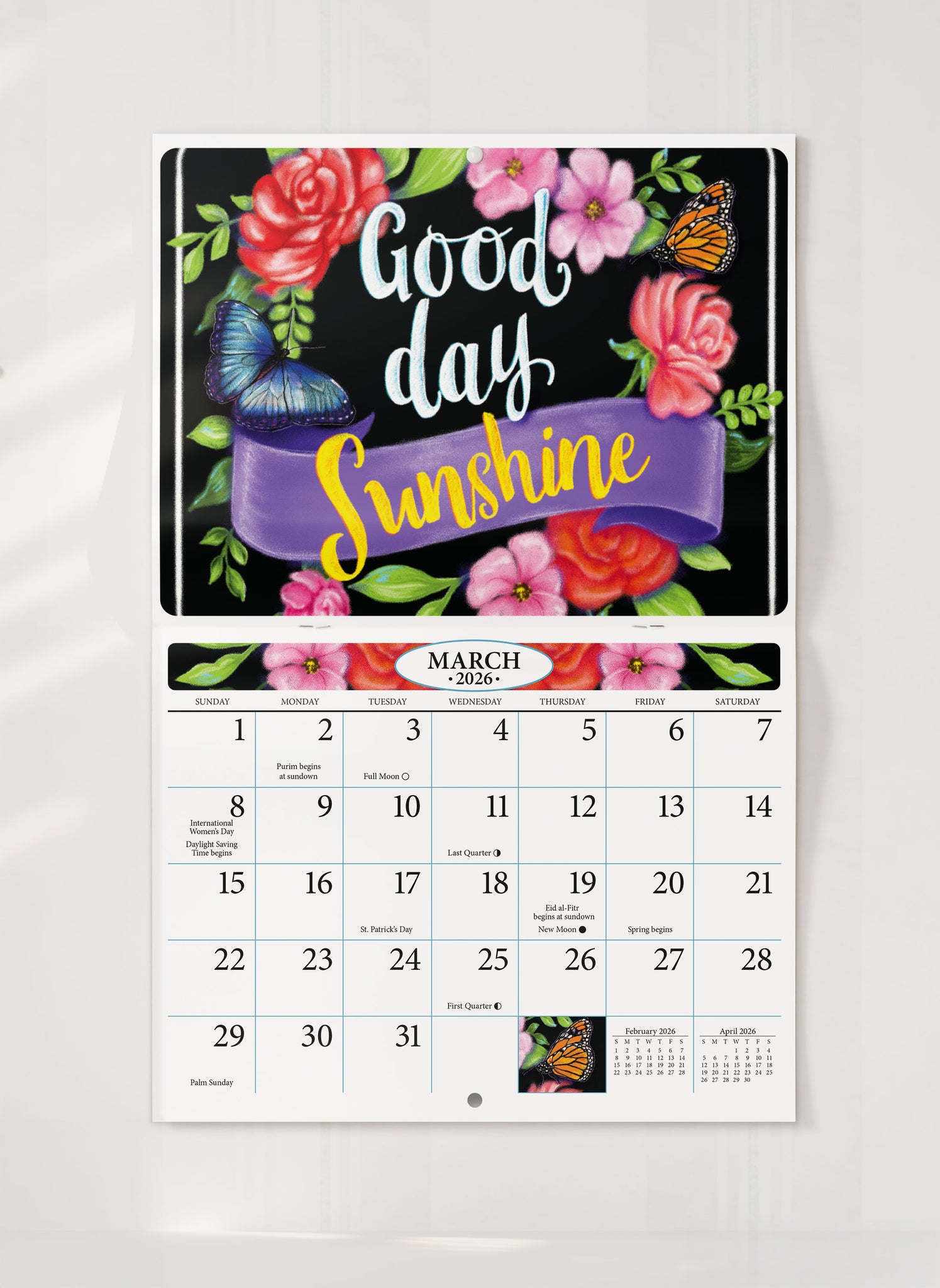 This calendar is perfect as decor in your home, kitchen, or office and easily helps to keep track of important dates, contacts, and other annual events at a glance. Just write it down once and you can be sure you stay organized every year after! Personalization is easy with using different colors for anniversaries and birthdays, add stickers or stickie notes for a quick reference, or create your own system of symbols and abbreviations. 11 x 17" when open.